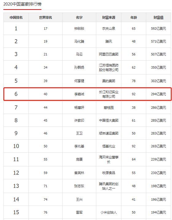 今年的福布斯中国富豪榜,李嘉诚的身价以294亿美元的身价排名第六,比去年又跌落两名,身价比2018年时还减少了。