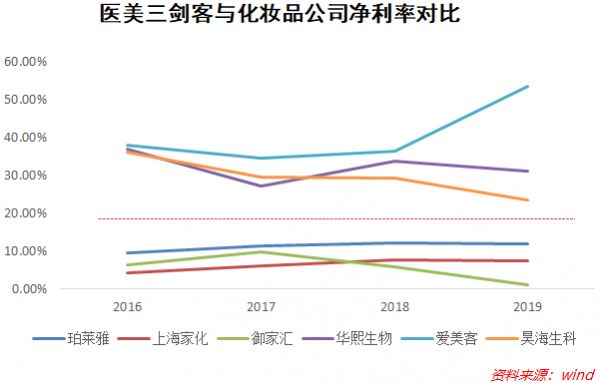 可以看到,同样销售与美相关的产品,医美三剑客华熙生物、爱美客、昊海生科无论是在毛利率还是净利率方面,全部都远高于销售化妆品、护肤品的公司珀莱雅、上海家化、御家汇。总有人跟我说面膜等化妆品是暴利行业,但没想到的是玻尿酸等医美产品更加暴利,上市公司中能够达到毛利率90%水平的恐怕只有贵州茅台等高端白酒公司了。