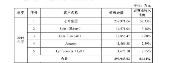 另外,作为一家小米生态链企业,自2017-2019年,小米集团都是九号公司的第一大客户。仅在2019年小米便为九号公司贡献了24亿元收入,占后者总收入的52%。