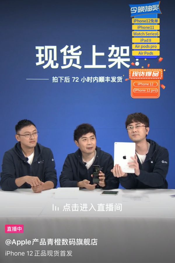 10月23日,黄贺与另外两位搭档,在抖音开启了苹果产品专场直播,在过程中大部分也由他来介绍产品各项参数、性能,而近期黄贺的抖音账号也发布了多个有关数码电子产品的小视频,今后其带货方向或许会在数码电子产品领域。