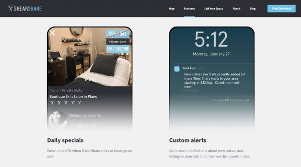 ShearShare 平台可以被视作共享经济的衍生品,造型师可以像订酒店一样,按天、周或者月来租赁理发场地,而理发店也可以在平台上传出租信息。造型师能够借助 ShearShare 提升经济流动性,可以预定离家最近的工作场所,理发店的出租房也可以赚取房租收入。