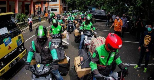 2020年6月5日,Gojek的骑手们正为受新冠肺炎疫情影响的居民运送食品。| GETTY IMAGES