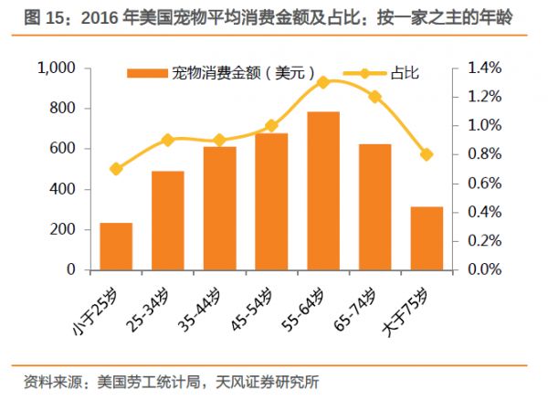 55-64岁的老年人为宠物付出的最多,65岁之后已经有心无力,75岁之后的老人,已经老得养不动宠物了。宠物与老龄化,相依相伴,相依为命。