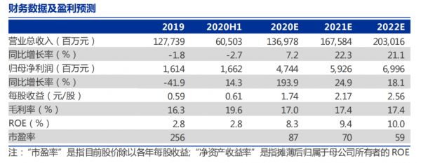 因此,我们充分看好其现有各业务板块的业绩兑现性,尊重先发优势的前提下,相信其在电池、电动车、电子等多个领域都将开始充分兑现其此前积累的各项技术能力。我们上调盈利预测,维持增持评级。上调20-21年归母净利润至47/59亿(调整前43/58亿),新增22年预测归母70亿,对应估值为81/65/55倍。