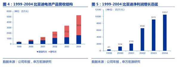 1997年金融风暴席卷东南亚,全球电池产品价格暴跌20%到40%,日系厂商处于亏损边缘,但比亚迪的低成本优势越发显得游刃有余,当年增速甚至达90%。在镍镉电池市场,抢占了全球近40%的市场份额。