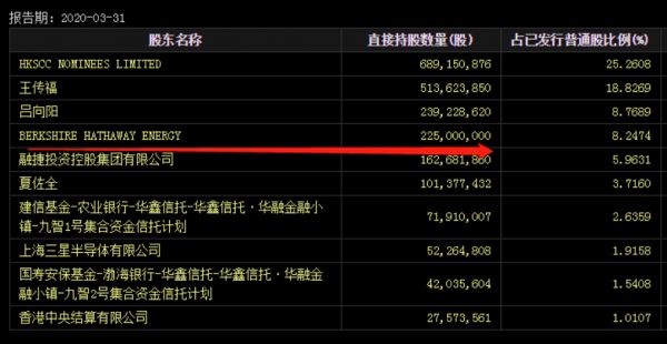 比亚迪是目前巴菲特唯一持股并多次在公开场合力挺的中国公司,根据比亚迪披露的股东持股情况来看,截止至今年3月31日,伯克希尔哈撒韦仍然持有2.25亿股比亚迪股份,占8.25%,是该公司第四大股东,这说明巴菲特在这十二年来从未有过减持!