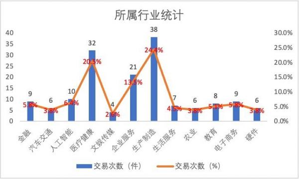 在赛道分布上看,本周Top3热门融资赛道分别为:生产制造(38笔,占比24.4%)、医疗健康(32笔,占比20.5%)、企业服务(21笔,占比13.5%)。本周生产制造热度较高获得资本青睐,医疗健康和企业服务保持了以往的投资热度。