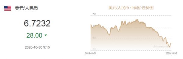 10月26日,中国外汇交易中心的数据显示,人民币对美元汇率中间价报6.6725,较前一交易日下调22个基点。