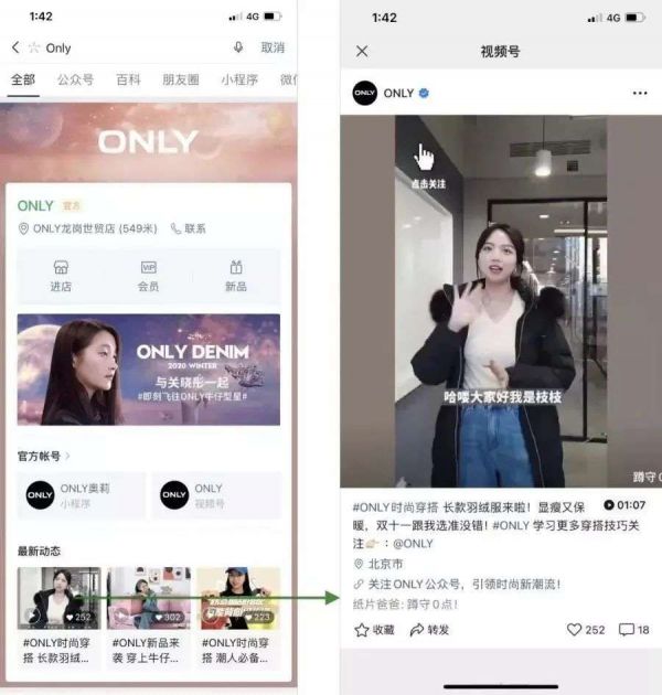 1、外部:视频号全面接入品牌官方区的内容模块和单品推广