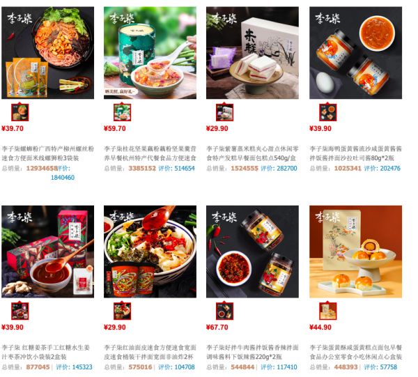 2020年疫情的影响,李子柒店铺中的方便食品更是受到了追捧,粗略估算,其店铺年销售额可达到5亿,超过了20%食品类A股上市公司,其中最受欢迎的螺蛳粉(3连包)月销超过100万,总销量超过1200万,成为爆款中的爆款。