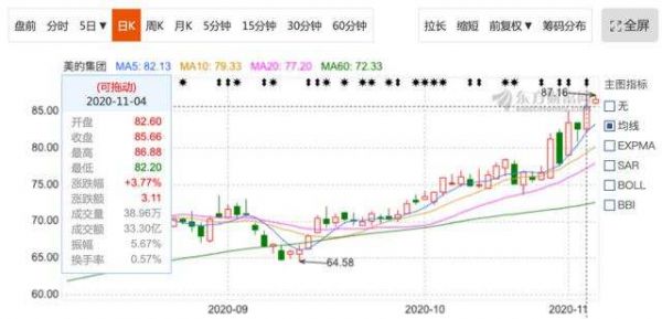 作为白家电市场“一哥”,美的集团交出的这份财报亦得到资本市场的热烈回应。11月4日开盘,美的股价高开高走,截至当日收盘涨幅超3个点,市值达到6018.37亿元。