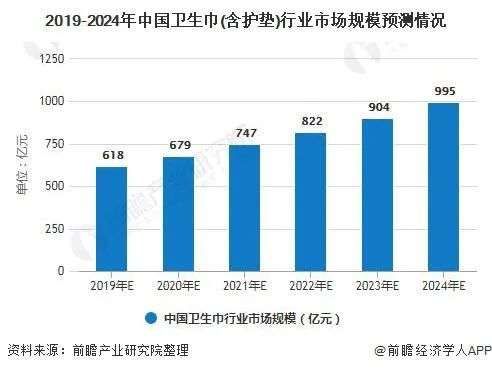 中国造纸协会生活用纸专业委员会预测,2020年中国卫生巾(含护垫)市场规模将达到611亿元。