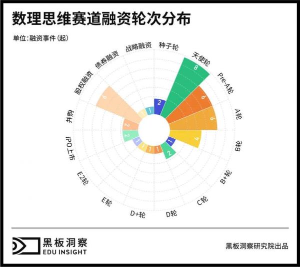 据黑板洞察统计,2015年至2020年至今,除已关闭机构外,共有17家垂直领域机构获得融资。过亿的大额融资有13起,并购事件2起。已融资机构主要集中在北京。数理思维线上化趋势明显,线下数理思维机构虽出现更早,但几乎没有获得融资。