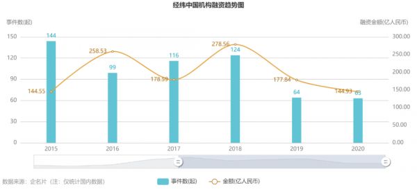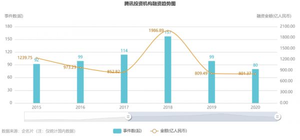 根据企名片统计的公开交易数据推算,2020 年国内头部知名机构参与的投融资交易数量和金额与 2019 年相比,呈现出不降反增的态势;如下图所示,无论是经纬中国这样集中投资大天使阶段的创业投资基金,还是像腾讯投资这样的战略投资基金,都呈现了类似的趋势。