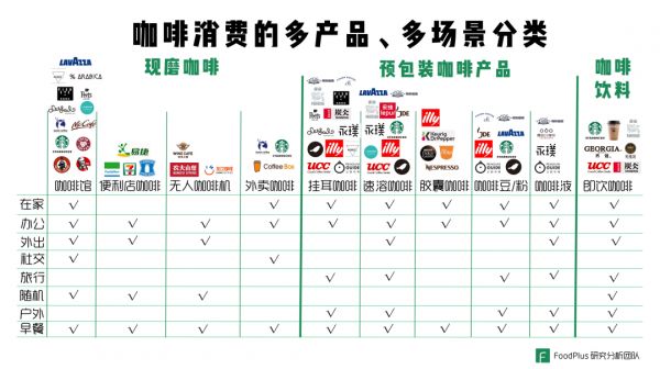 咖啡消费的多产品、多场景分类,图片来源:FoodPlus研究分析团队