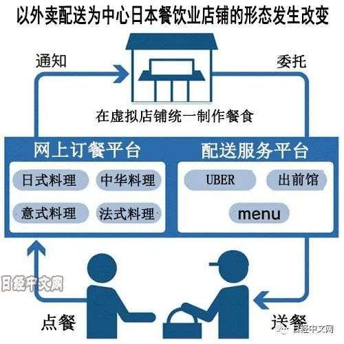 外卖配送的急剧扩大开始改变过去以店内饮食为主流的日本餐饮业模式。由主打“丸龟制面”的TORIDOLL控股出资的“Ghost restaurant研究所”在线上运营了12个不同的“虚拟餐厅”。烹饪菜品的厨房设施只有1处,专用终端收到订单的通知后,工作人员将分别制作面向不同“餐厅”的菜品,然后由送餐员配送至订餐客人处。