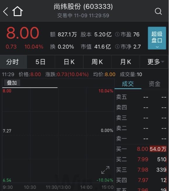 9日开盘后,尚纬股份一字涨停,股价报8元/股,最新市值41.6亿元。公开资料显示,尚纬股份是全国电缆行业第一家以特种电缆为主营业务的上市企业。