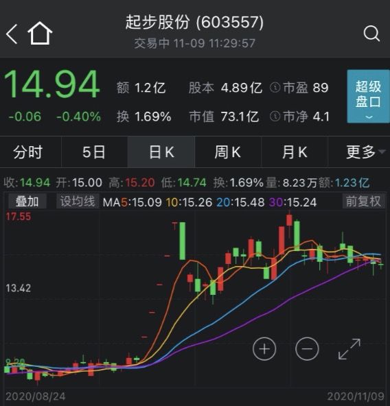 截至11月9日午间收盘,起步股份股价报11.94元/股,最新市值73.1亿元。