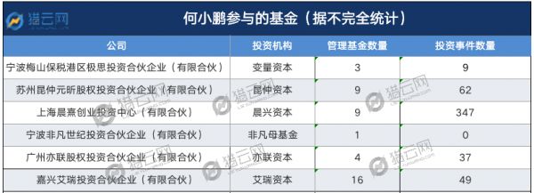 值得注意的是,实现财务自由的何小鹏其实早就默默地投出了一张LP版图。