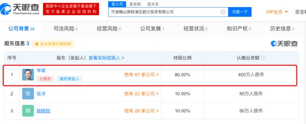 此外,李斌还是宁波梅山保税港区蔚兰投资有限公司的大股东和最终受益人,蔚兰投资旗下的蔚来资本管理着3只基金,投资过石墨文档、易骑换电、首汽约车、爱泊车等知名项目。