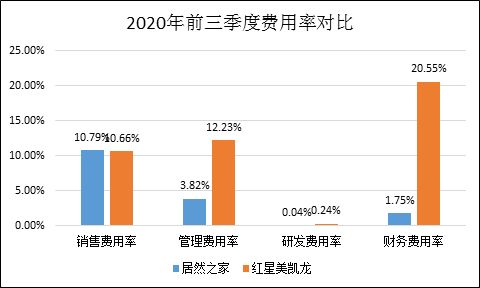 红星美凯龙不仅在对比商务服务行业上市公司平均值方面,费用率明显更高,在对比最大的竞争对手居然之家方面,其的综合费用也是明显更高,居然之家前三季度的费用率仅为16.38%,而红星美凯龙则达到43.68%。