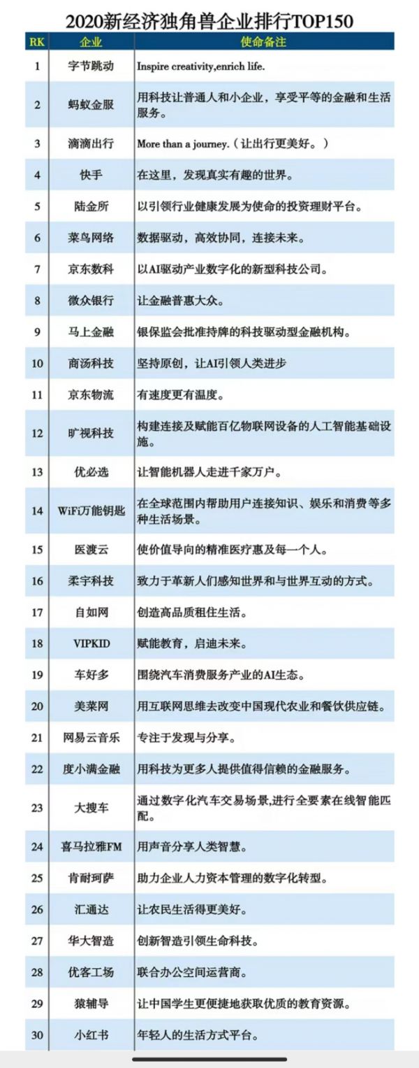 在中科院《互联网周刊》公布的“2020新经济独角兽企业150强”榜单中,蚂蚁集团、陆金所、京东数科分列第2、5、7位,而除了这些金融科技公司之外,榜单上的其他独角兽们也已经走在上市的路上。