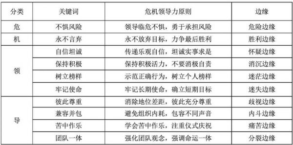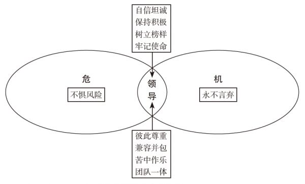 沙克尔顿的危机领导力包括沙克尔顿的危机领导力包括“危”“机”“领”“导”四个方面(表 1)。“危”意味着领导者要不惧风险,有能力带领团队行走在危险边缘;“机”要求领导者永不言弃,能够率领团队走向胜利。“领”引领之意,把团队从怀疑边缘拉回来;“导”是疏导之意,将团队从歧视边缘拉回来。