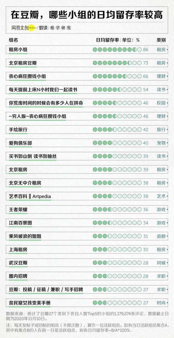 除了组内互动量,衡量豆瓣小组的活跃情况还有个更精准的指标,就是日活。