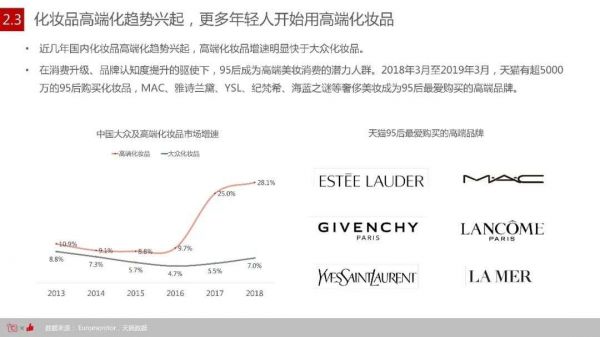 凯度消费者调查研究显示,作为美妆消费的主力军的 20 至 29 岁年轻女性,尤其喜欢高端品牌。据上海某大学的一项针对90后消费状况的研究显示,年轻族群更在意品牌力,并不在意价格折扣,更重要的是,有超过60%的90后表示不会关注平价品牌。