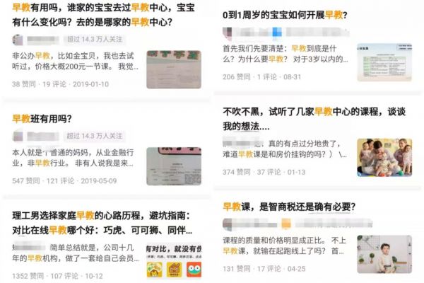 各大社交平台和母婴APP中,几乎遍布相关讨论:孩子该不该上早教,启蒙英语APP哪款好用。任何一个相似提问都能吸引很多回复,不过回复的家长很少能够提供答案,更多也是在寻求帮助。