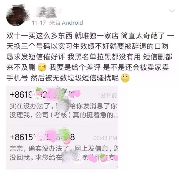 狂轰乱炸型:简单来说就是不仅在平台私信你索要好评,还给你的手机发短信、打电话索要好评,并且一天多次。