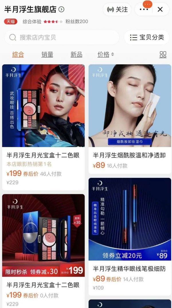 在岳岳看来,这和半月浮生的定价不无关系,“半月浮生售价229元,券后199元的价格有些难敌同等价位的“完美日记”或者橘朵,虽然也是标价一百多,但常常特价买下来就是79左右,而且同样价位下,大家也更愿意相信一直做彩妆的品牌吧。”