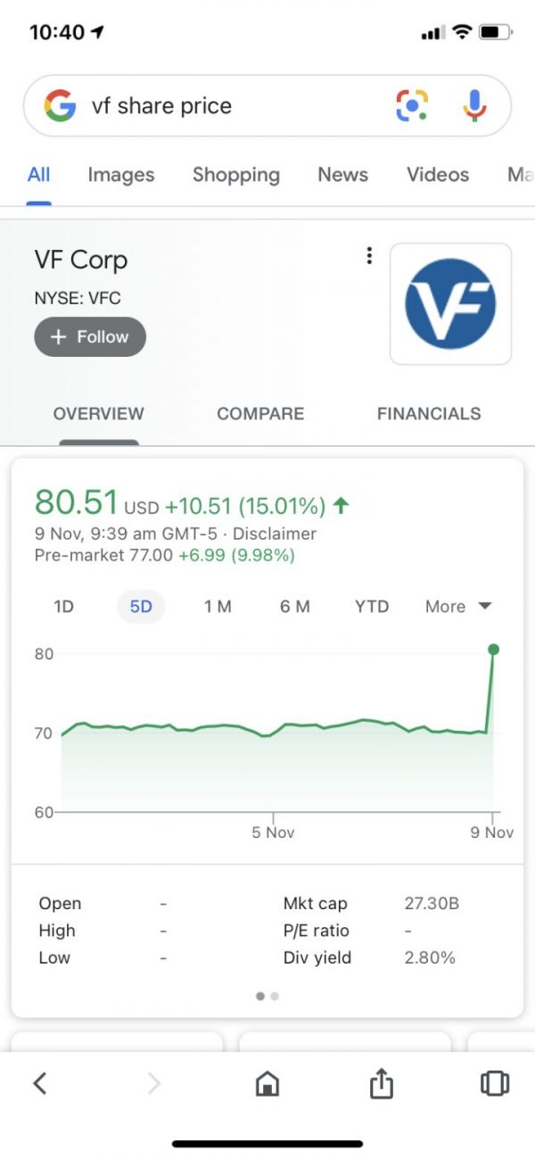 就在本周,拥有Vans、The North Face、Timberland、Dickies、Nautica等知名服装品牌的VF集团以21亿美元的收购了“万物皆可Supreme”的著名潮流品牌Supreme。收购的消息一经曝出,VF集团的股价快速拉高了15%,足见资本市场对于这次收购的青睐。