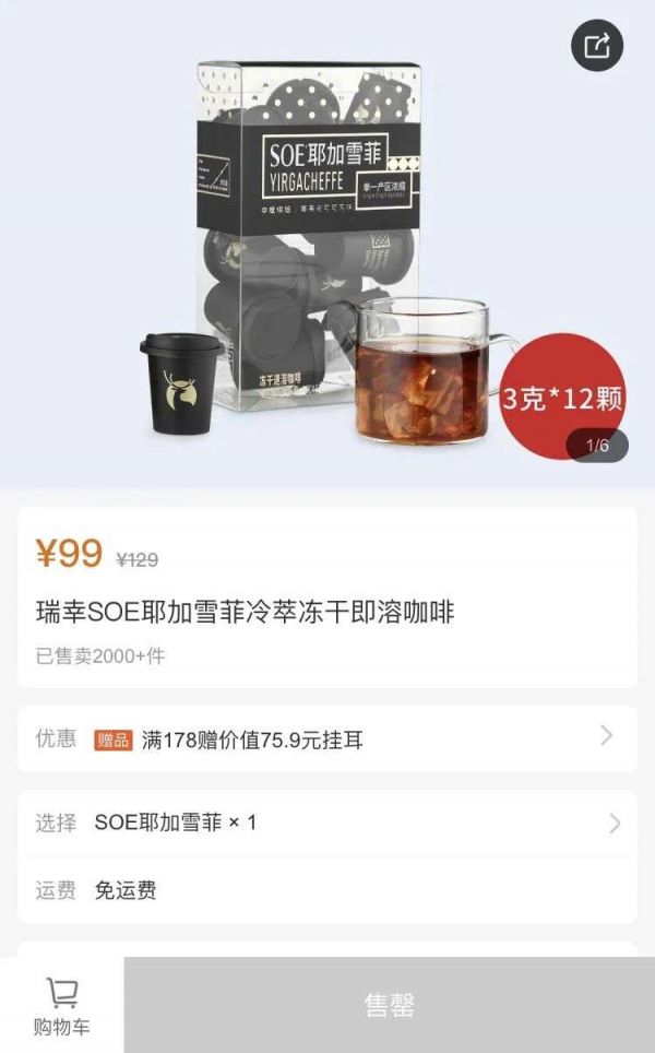 从销售渠道上看,这次上线更像是一次“小规模试水”:没在门店端销售,只在瑞幸APP、小程序和天猫旗舰店上售卖。不到一周时间,SOE耶加雪菲售罄,不过很快第二批货已经到位,又重新上架销售。