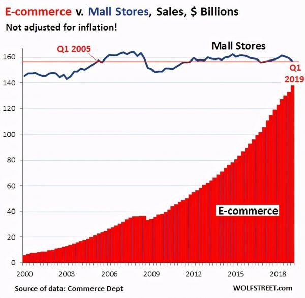 虽然美国电商仅占零售总额10.2%,但已经严重影响了整个零售商类别,近些年线下零售表现疲软,虽然与中国线下零售受到线上电商排山倒海式的重压不同,但美国电商零售也在不断蚕食着美国零售市场的份额。