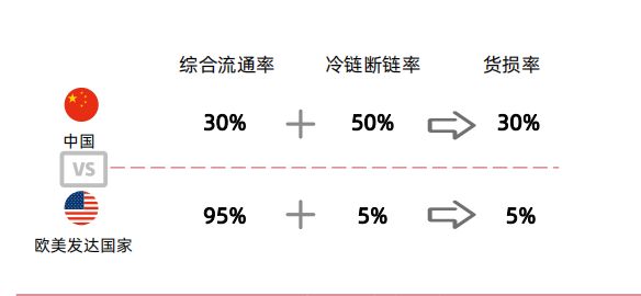 除此之外,供应链另一个重要的因素在于冷链运输。券商研报显示,我国冷链运输损耗率高达30%。这意味着谁能降低运输中的损耗率,谁就能获得这30%的利润。