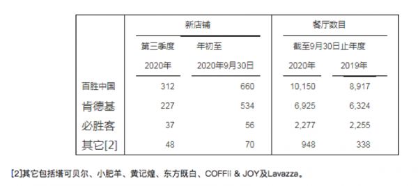 百胜中国2020第三季度新店开发情况