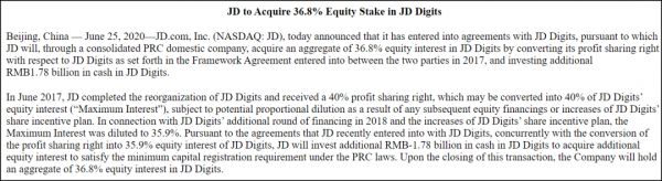 机构不来没关系,京东数科还有“爸爸”,京东2020年2月25日公告: