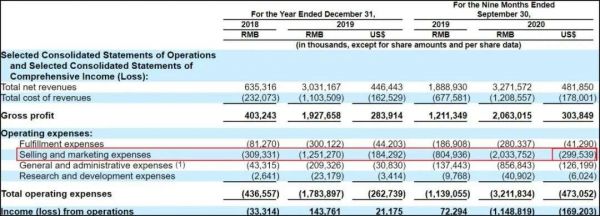 营销费用,2020年完美日记营收32.7亿元,营销费用20.3亿元,占收入的62.1%。你知道,美妆公司毛利率大概70%多(完美日记是60%多),扣掉营销费用基本无了,就是拿钱换量。