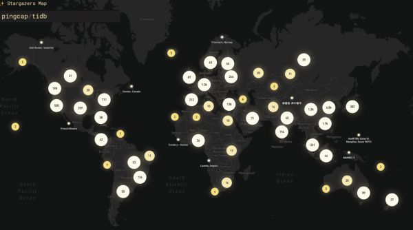 PingCAP海外的支持者分布,图片来源:PingCAP