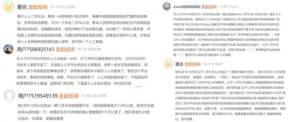 在平台上屡屡买到问题车辆,所谓的“真诚”并不能让用户买账。在黑猫投诉上,存在大量对二手车质量的投诉。