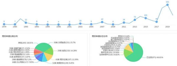 △麦当劳历年在中国申请注册的商标数和分类分布。