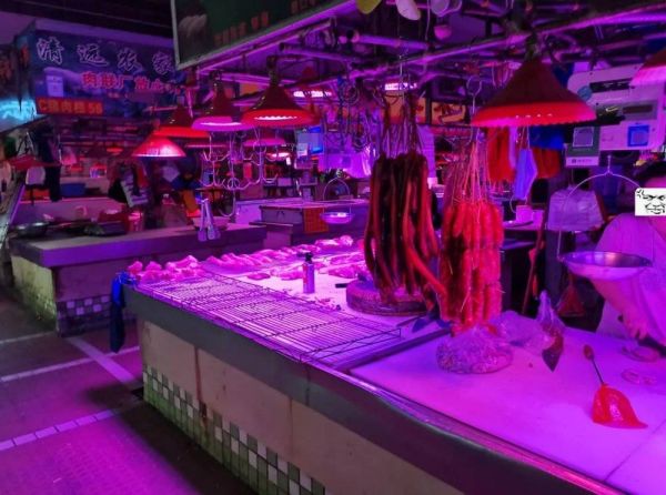 档口老板跟我说早上的肉会贵一些,因为新鲜,下午和晚上就比较便宜,原来这里的猪都是凌晨2点左右在肉联厂屠宰了送来的。