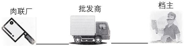 参与猪肉这条利益链的有 养猪场、肉联厂(屠宰场)、批发商、零售商(菜市场档主) 这4方。