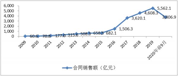 图表 2:2009年-2020年前9月合同销售额(亿元)