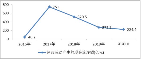 图表 4:2016年-2020年上半年经营活动产生的现金流量净额(亿元)