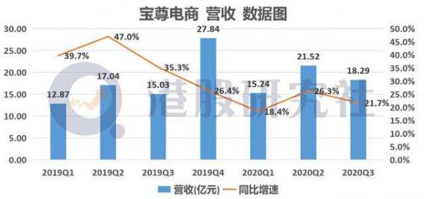 根据其财报数据显示,2020年第三季度,宝尊电商总净营收为人民币18.3亿元,同比去年同期上涨21.7%。
