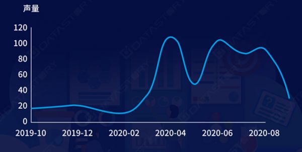 根据雷达数据显示,截至2020年9月,瑞幸的声量,在自曝财务造假后到达高峰,之后回落到常规水平,后又因为新品的推出,重新达到新的声量峰值。