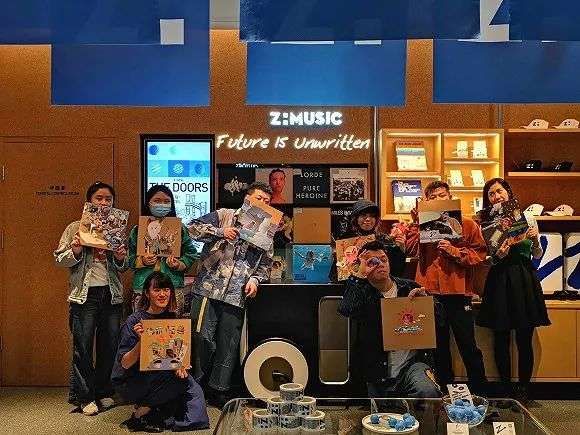 和传统酒店不同的是,ZHotel的整个公共区域用来做潮牌的零售和社群活动空间,和右边的餐厅、咖啡厅兼酒吧连通一体。除了极具艺术气息的客房设计,在房内放置唱片机,ZHotel还有自己的孵化社群活动的小程序,住在这里的客人们和当地的活动组织者一起参与创意拼贴、插图绘画、小型音乐会等城市青年的兴趣活动。