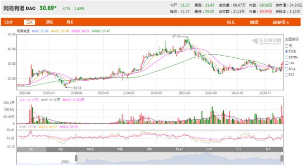 有道2019年10月从网易独立并在纽交所上市,公司最新公布的季报显示,2020自然年第三季度收入录得8.96亿元,实现了上市以来的最快增速——同比增长159%。另一个关键指标正价付费人次达49.87万,同比增长高达400%以上。